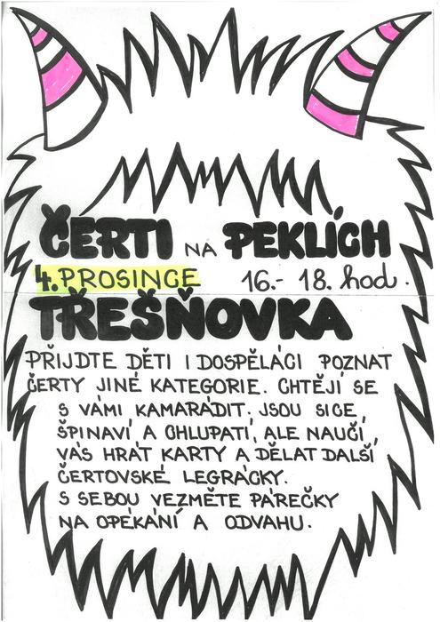 Čerti na Peklích v Třešňovce  4.prosince od 16 do 18 hodin - více viz plakát